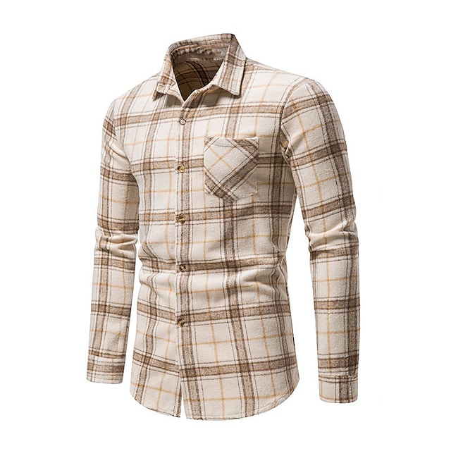 Men's Shirt Shirt Jacket Plaid Turndown Blue Light Brown Brown Long Sleeve Outdoor Street Button-Down Tops Fashion Casual Breathable Comfortable