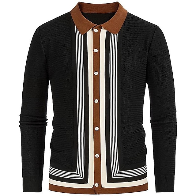 Men's Shirt Shirt Jacket Striped Turndown Black Long Sleeve Outdoor Street Braided Button-Down Tops Basic Fashion Casual Breathable / Summer / Spring / Summer