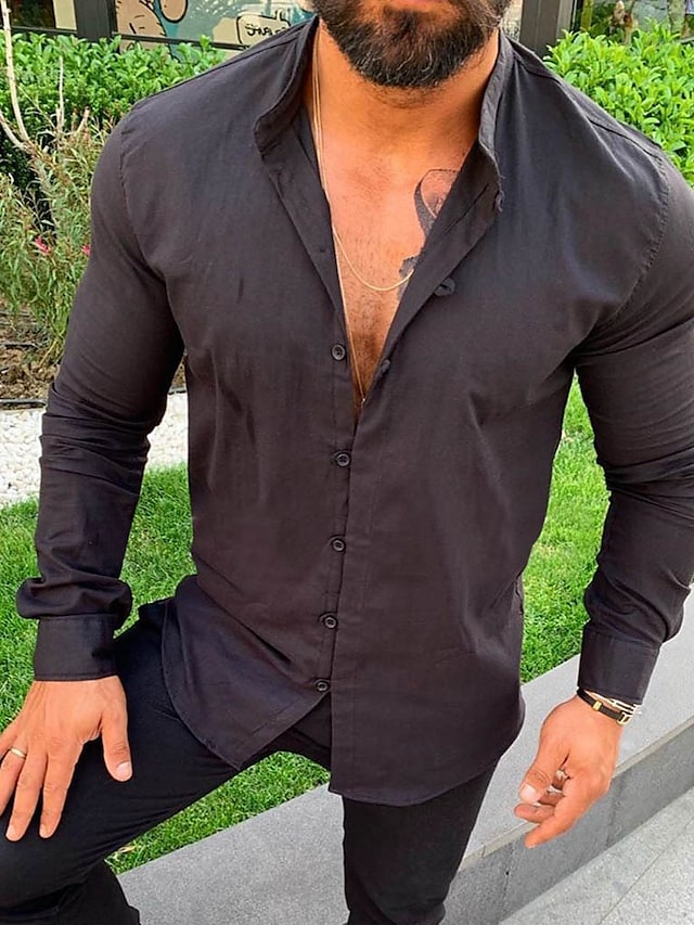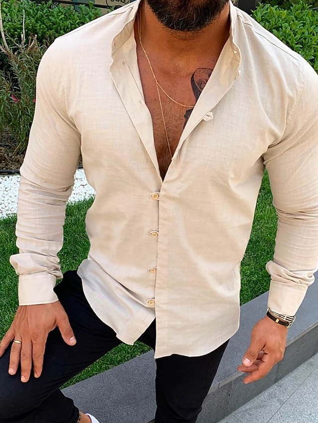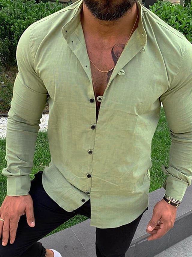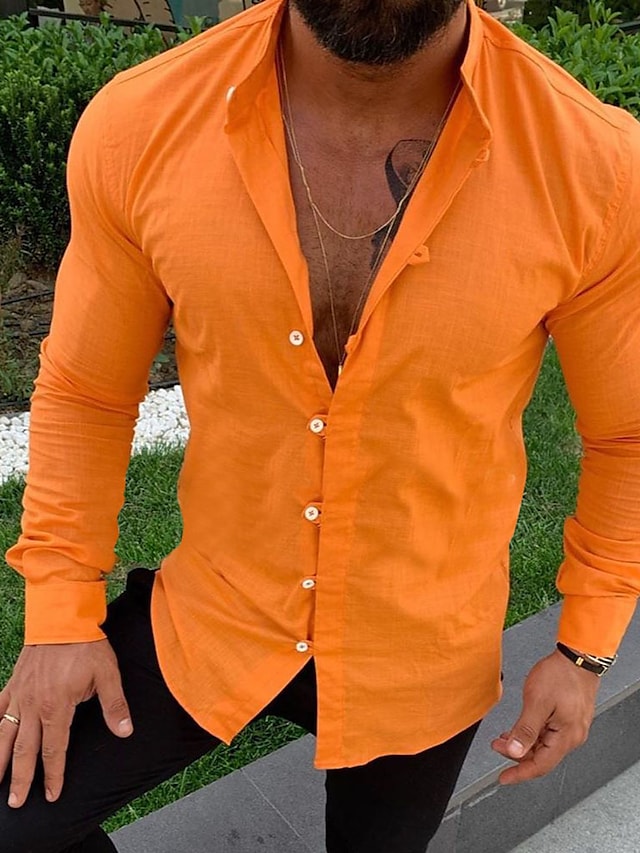 Men's Shirt Solid Color Collar Green White Black Orange Beige Long Sleeve Outdoor Street Button-Down Tops Cotton Fashion Casual Comfortable / Summer / Spring / Summer