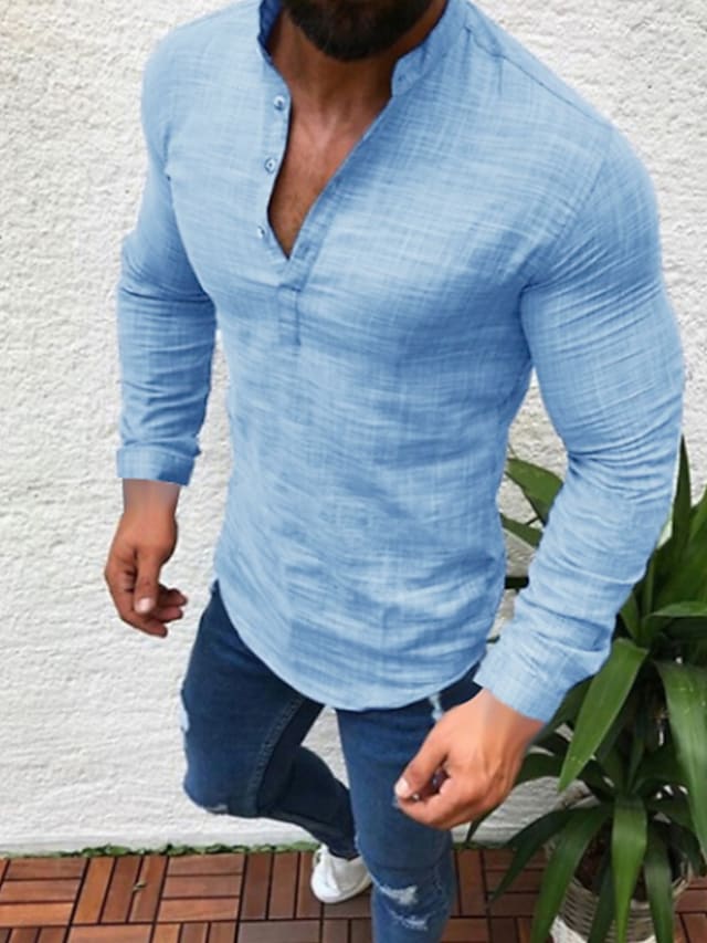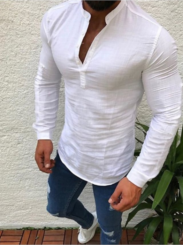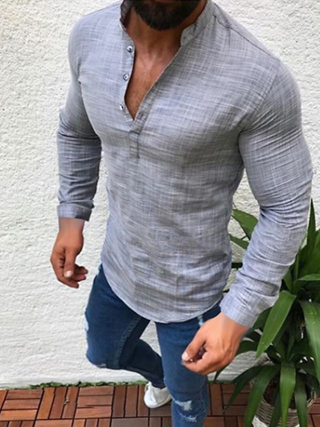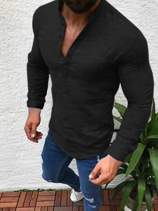 Men's Shirt Solid Colored Plus Size Collar Round Neck Long Sleeve Tops Cotton Simple Comfortable White Black Gray Causal Daily Work Beach Comfortable Soft Summer