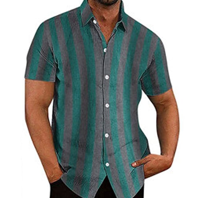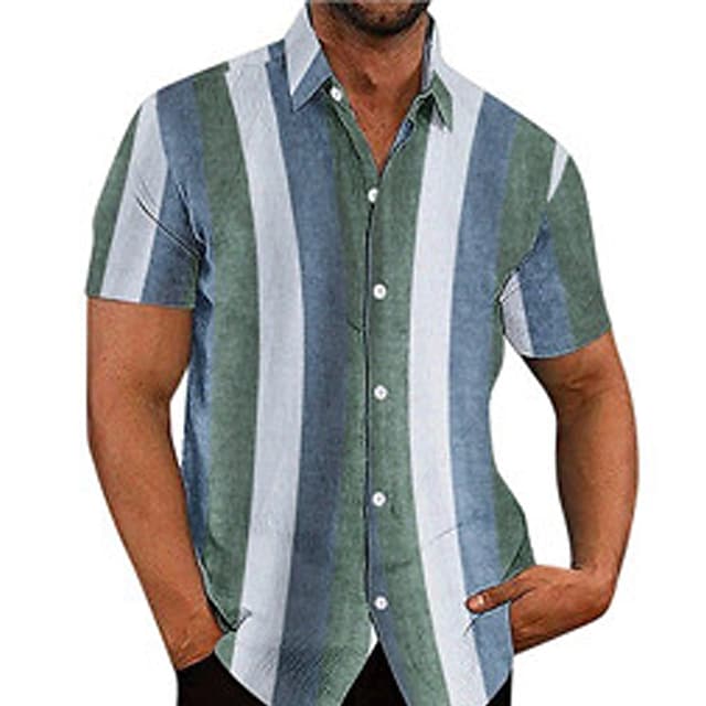 Men's Shirt Striped Turndown Green Blue Khaki Short Sleeves 3D Print Outdoor Street Button-Down Print Tops Designer Casual Breathable / Summer / Spring / Summer