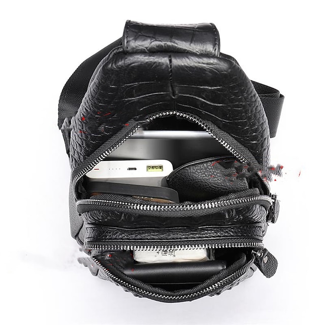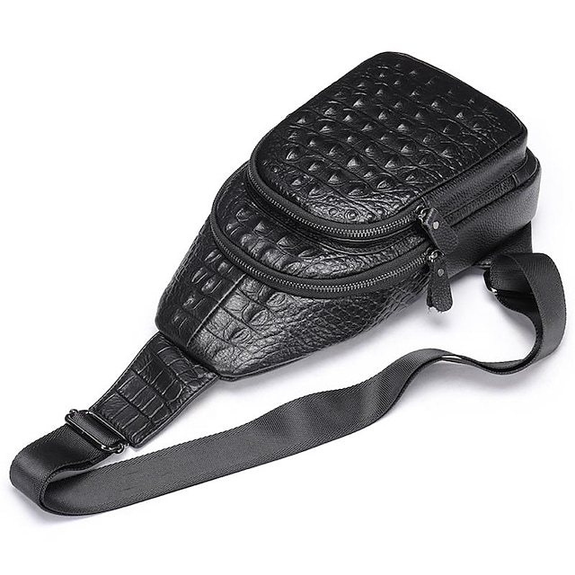 Men's Sling Shoulder Bag Crossbody Bag Nappa Leather Cowhide Zipper Solid Color Vintage Daily Black