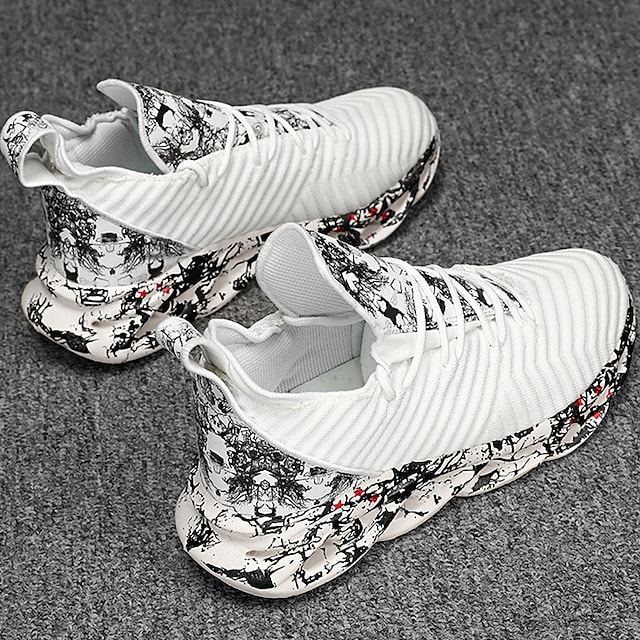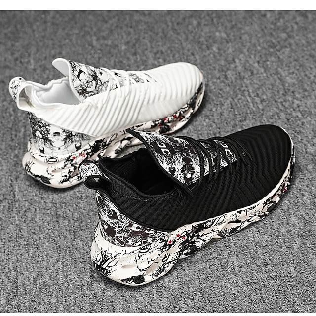 Men's Sneakers Lace up Classic Daily Walking Shoes PU Breathable Black and White White Yellow Summer