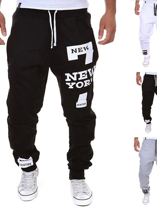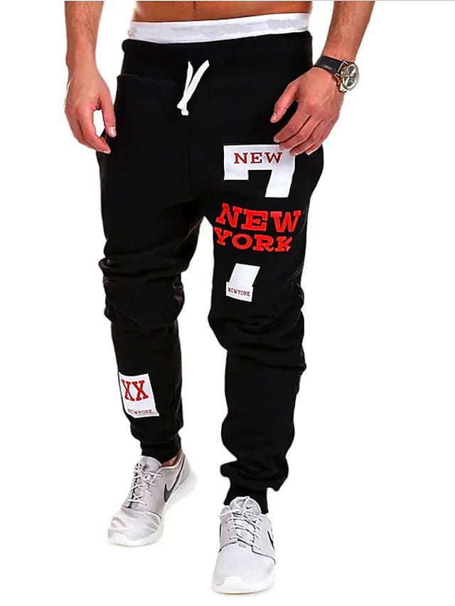 Men's Sporty Active Loose Active Relaxed Drawstring Print Full Length Pants Street Sports Micro-elastic Letter Mid Waist Loose Black / Red White Black Dark Gray Light gray S M L XL XXL / Weekend