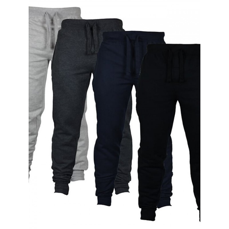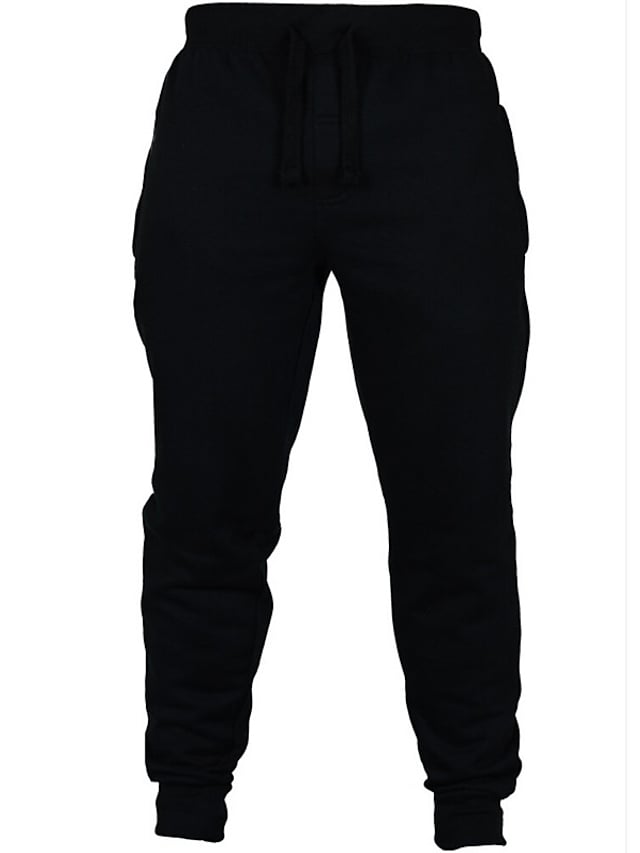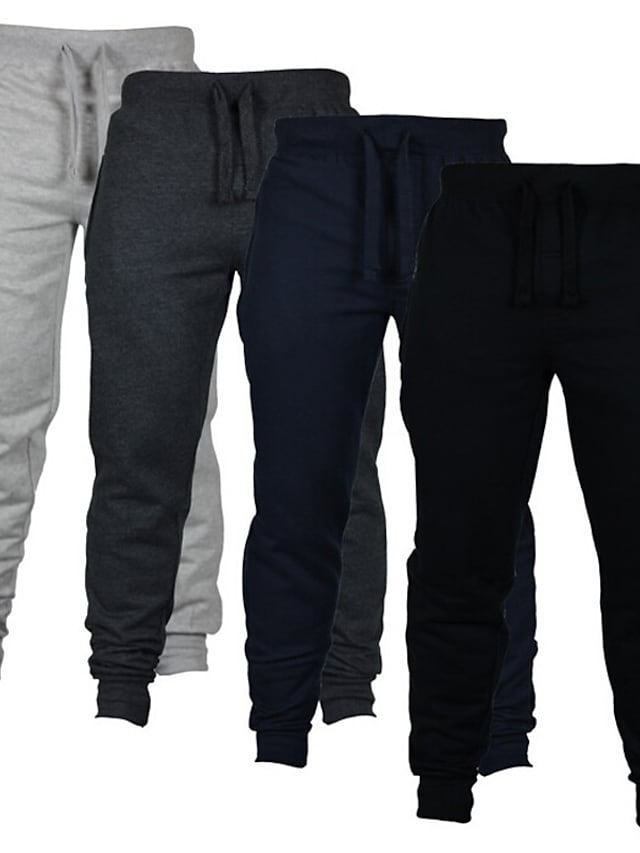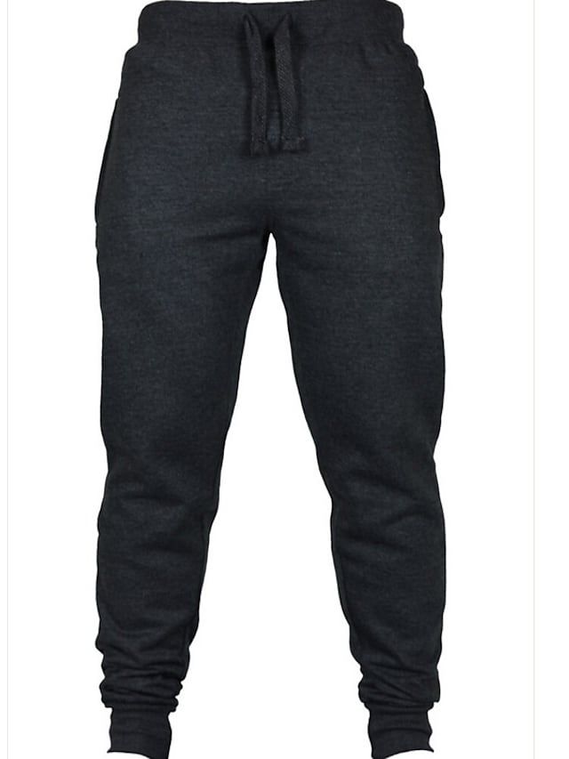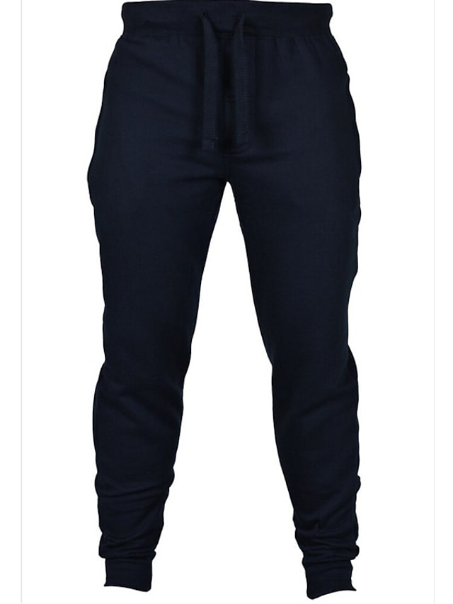 Men's Sporty Casual / Sporty Pants Chinos Drawstring Elastic Waist Full Length Pants Sports Weekend Micro-elastic Solid Color Cotton Breathable Soft Mid Waist Black Light gray Dark Gray Navy Blue S M