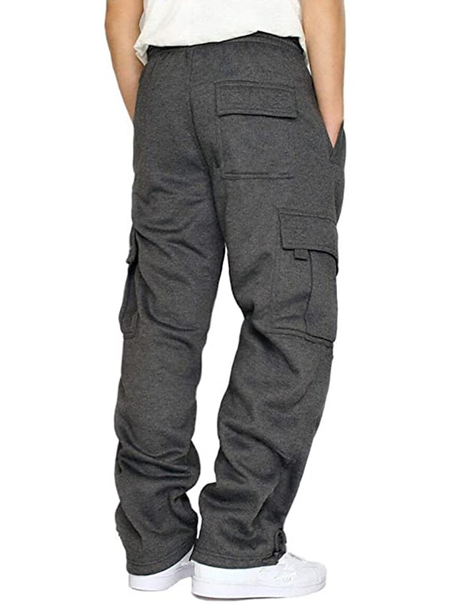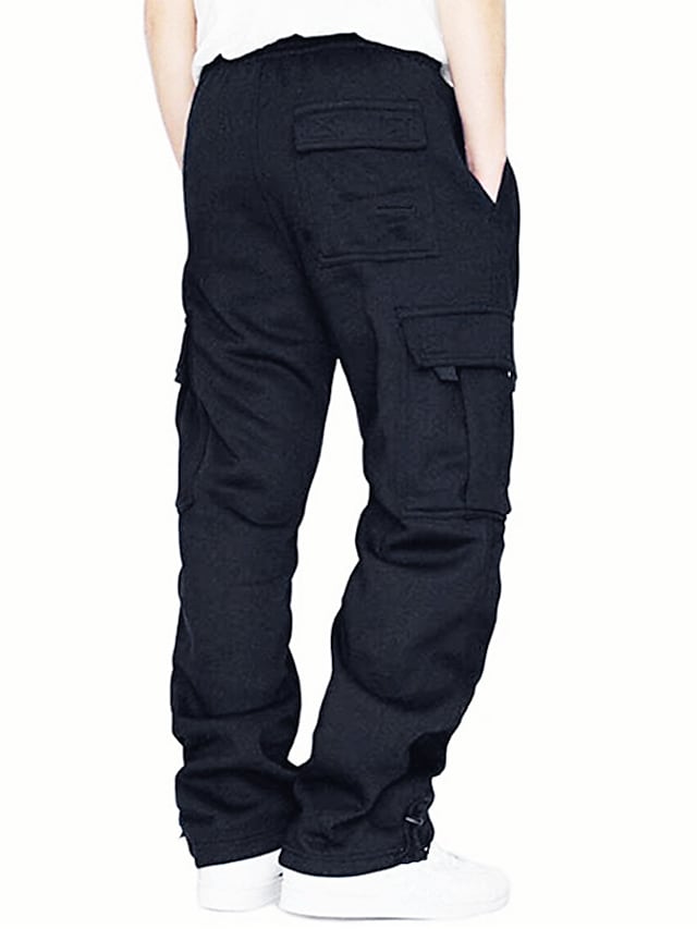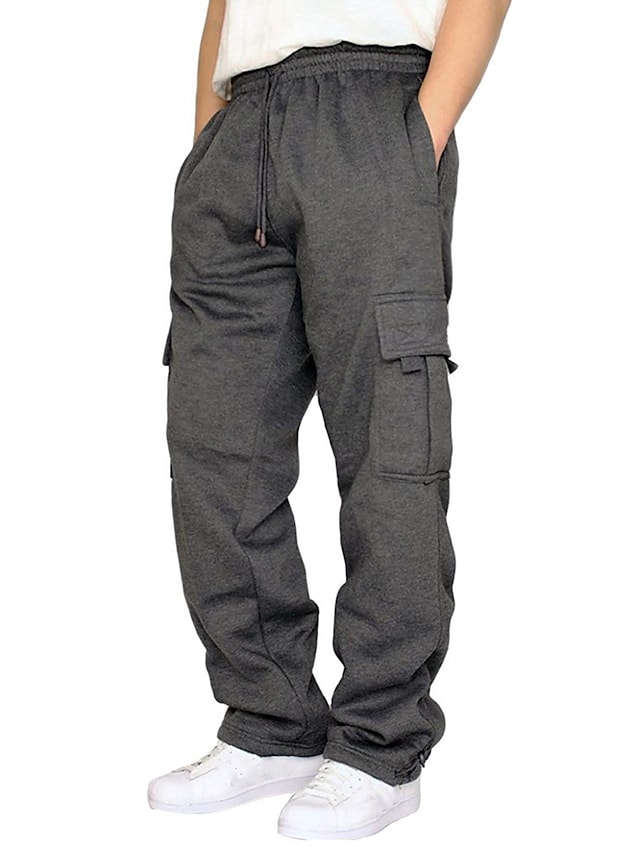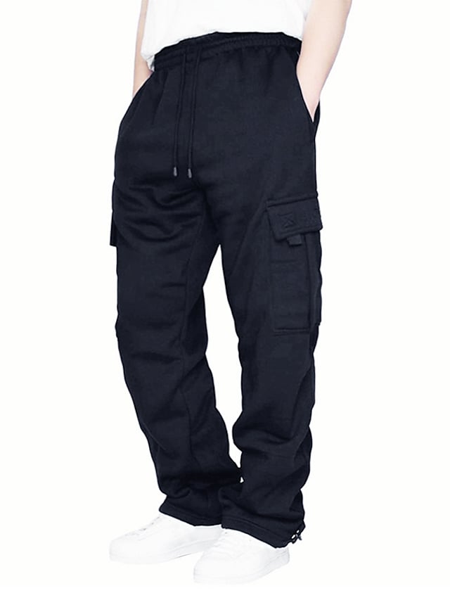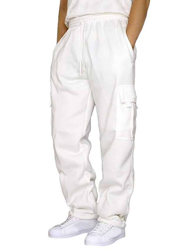 Men's Straight Sweatpants Joggers Drawstring Elastic Waist Multi Pocket Solid Color Pants Casual Daily Sports Streetwear Loose Fit White Black