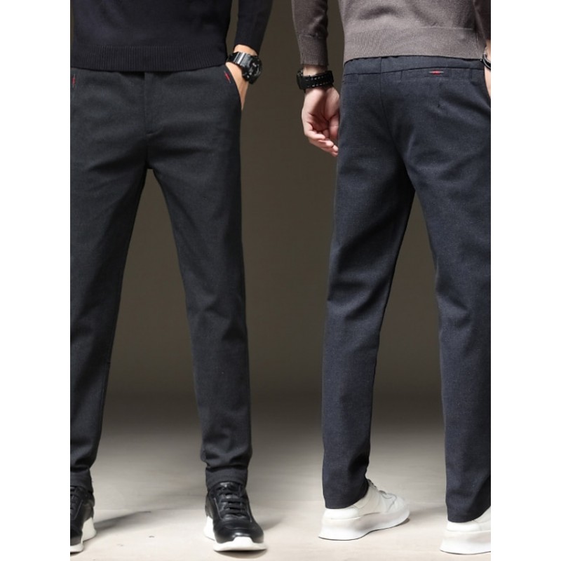 Men's Straight Trousers Casual Pants Pocket Solid Color Comfort Breathable Pants Casual Daily Cotton Blend Stylish Simple Black Blue Micro-elastic