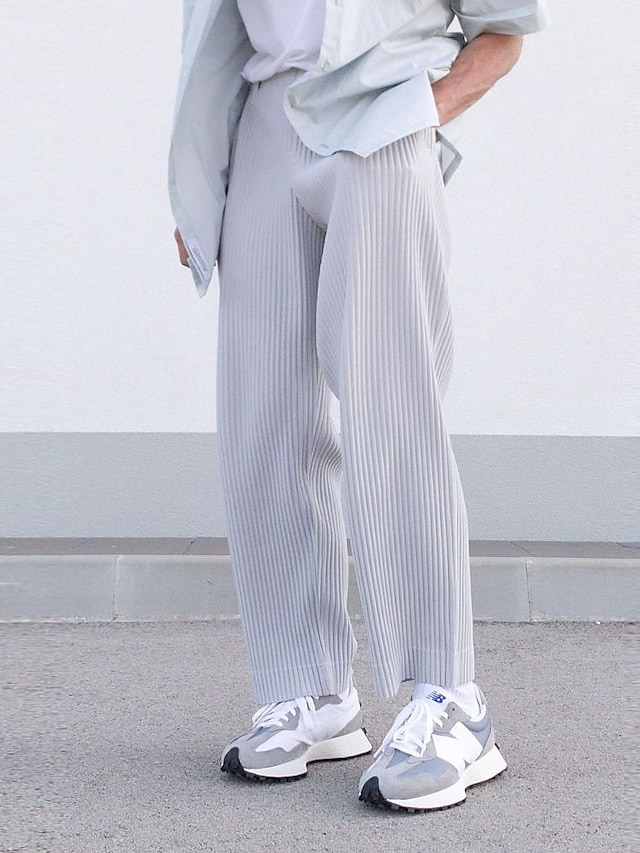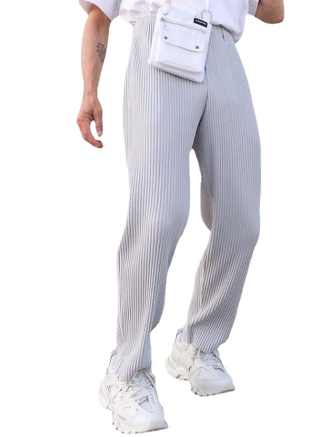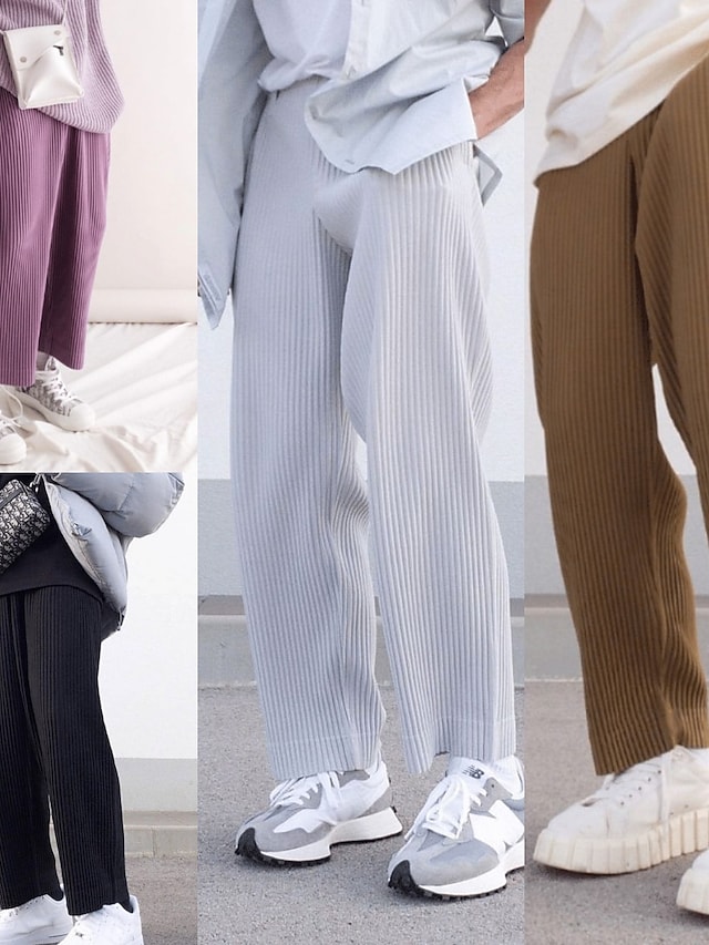 Men's Straight Trousers Winter Pants Drawstring Elastic Waist Solid Color Comfort Breathable Pants Casual Daily Corduroy Sports Fashion Loose Fit Black Purple Micro-elastic / Elasticity