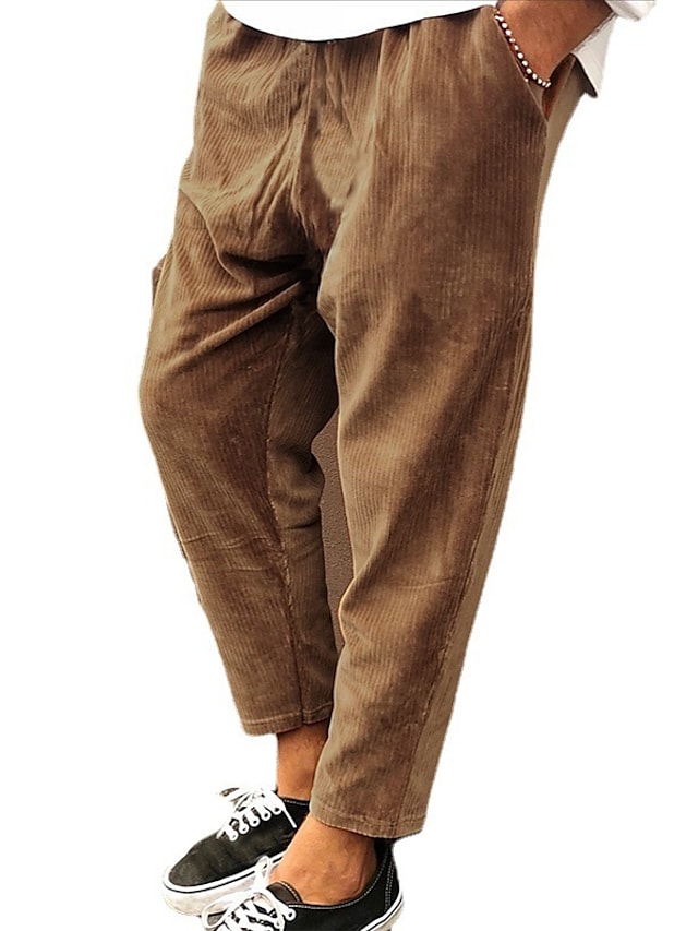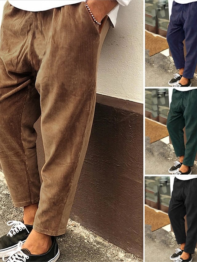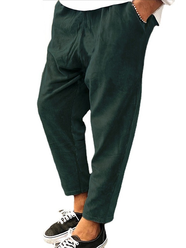 Men's Straight Trousers Winter Pants Drawstring Elastic Waist Solid Color Comfort Breathable Pants Casual Daily Corduroy Sports Fashion Loose Fit Green Black Micro-elastic / Elasticity