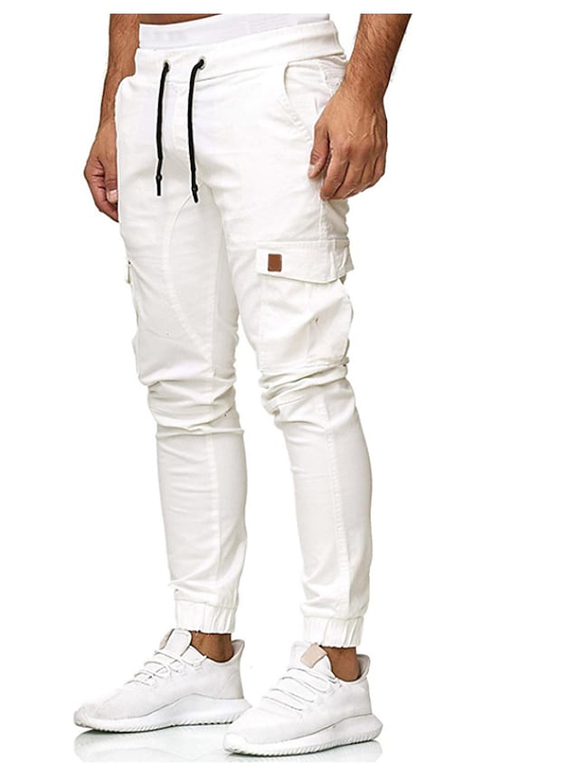 Men's Streetwear Jogger Chinos Sweatpants Elastic Waistband Drawstring Multi Pocket Full Length Pants Micro-elastic Solid Colored Cotton Mid Waist White Black Gray Army Green Khaki S M L XL XXL
