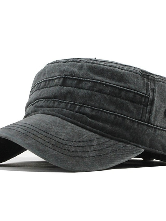 Men's Stylish Protective Hat Street Dailywear Pure Color Flat Top Adjustable Baseball Cap Black Hat Portable