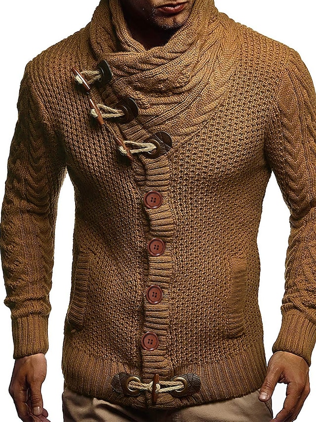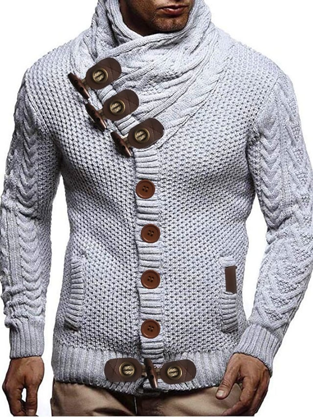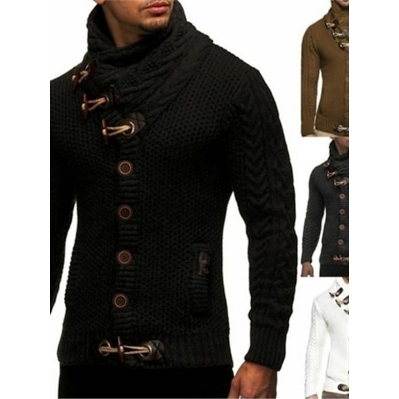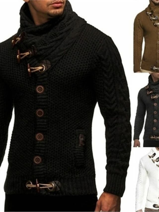 Men's Sweater Cardigan Jumper Knit Knitted Braided Solid Color Turtleneck Vintage Style Cardigan Dailywear Daily Fall Winter White Black S M L / Long Sleeve / Long Sleeve / Loose