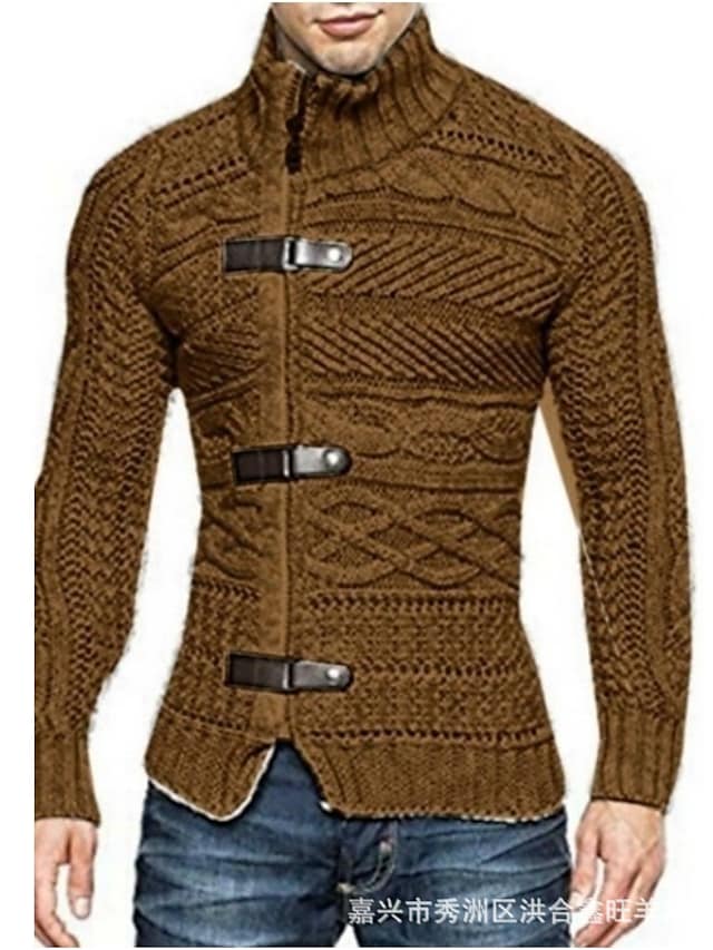 Men's Sweater Cardigan Jumper Knit Knitted Button Solid Color Stand Collar Stylish Vintage Style Fall Winter White Black S M L / Long Sleeve / Turtleneck / Long Sleeve / Geometric