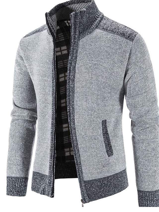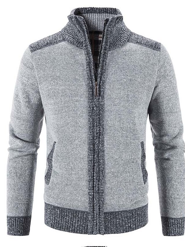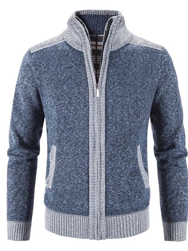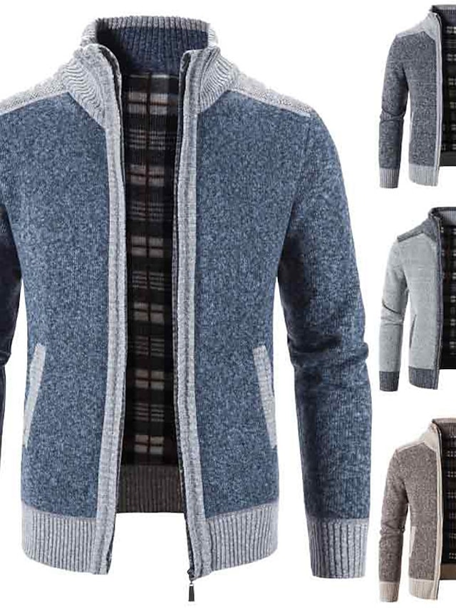 Men's Sweater Cardigan Jumper Knit Knitted Color Block Shirt Collar Stylish Casual Sport Daily Fall Winter Blue Light gray M L XL / Long Sleeve / Long Sleeve