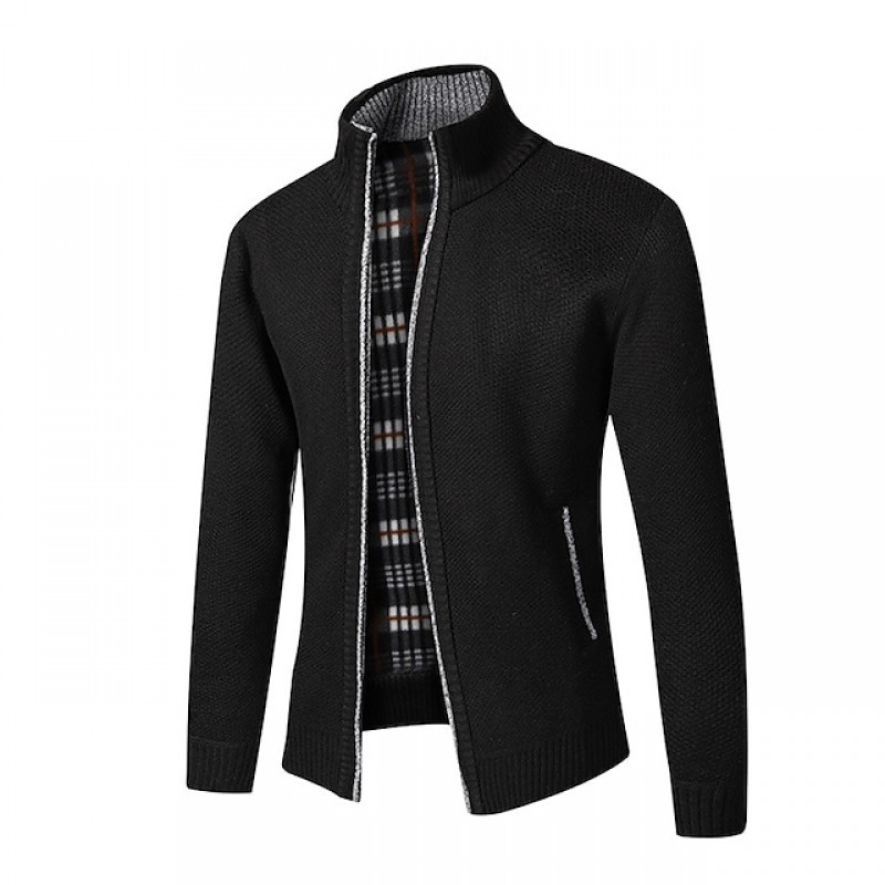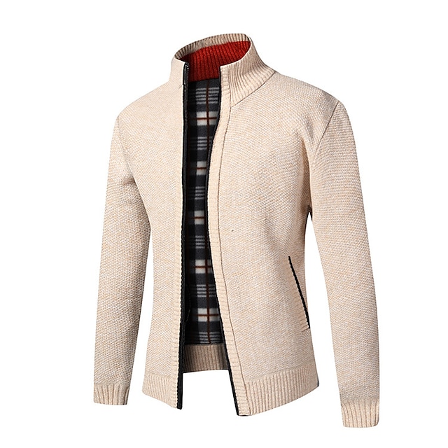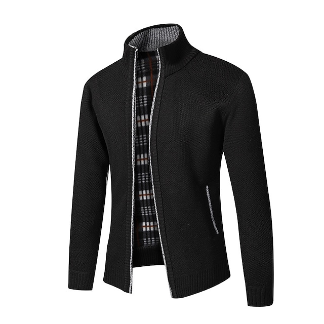 Men's Sweater Pajamas Sweater Cardigans Sweater Coat Bishop Sleeve Zipper St Collar Medium Thickness Spring & Fall Black Gray Khaki