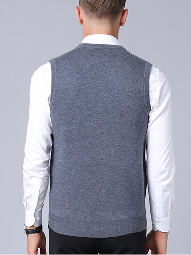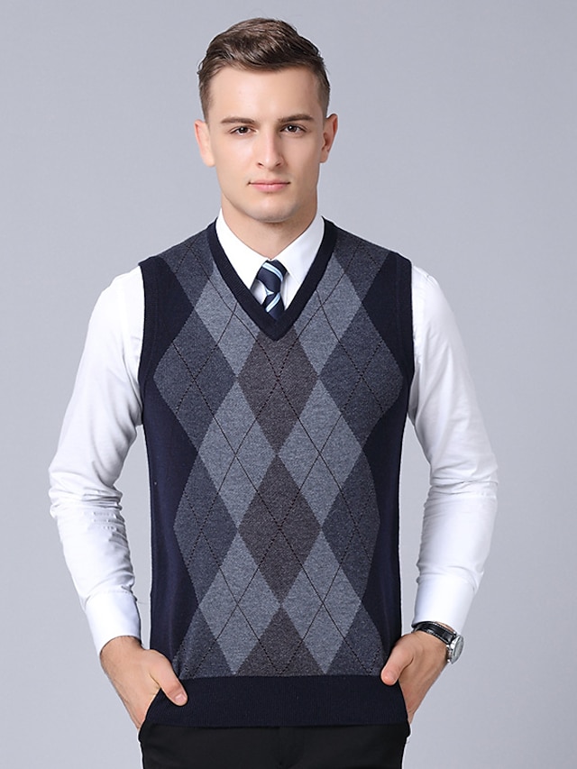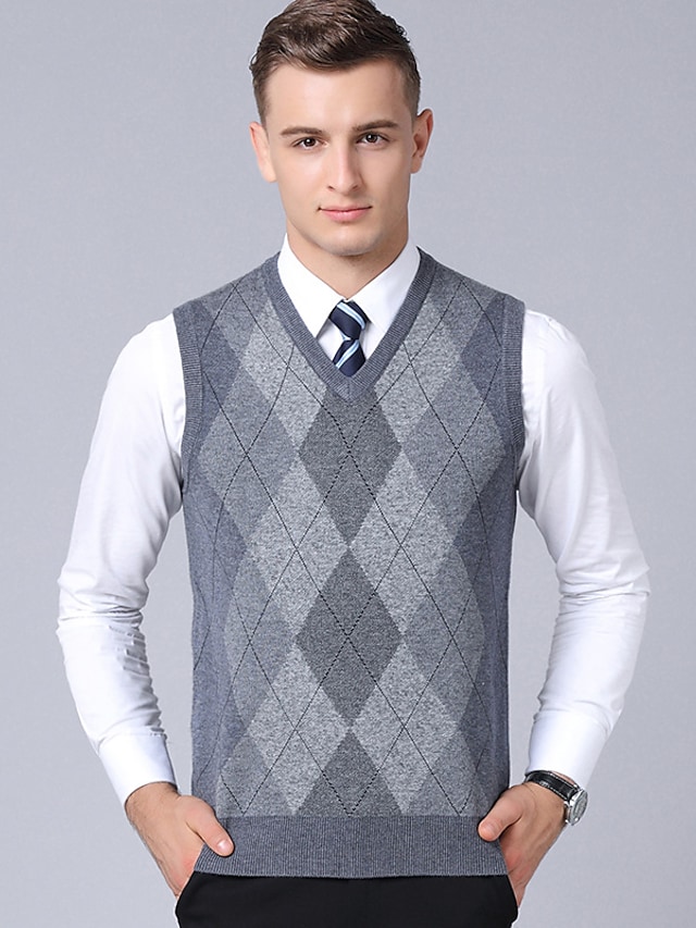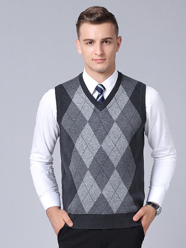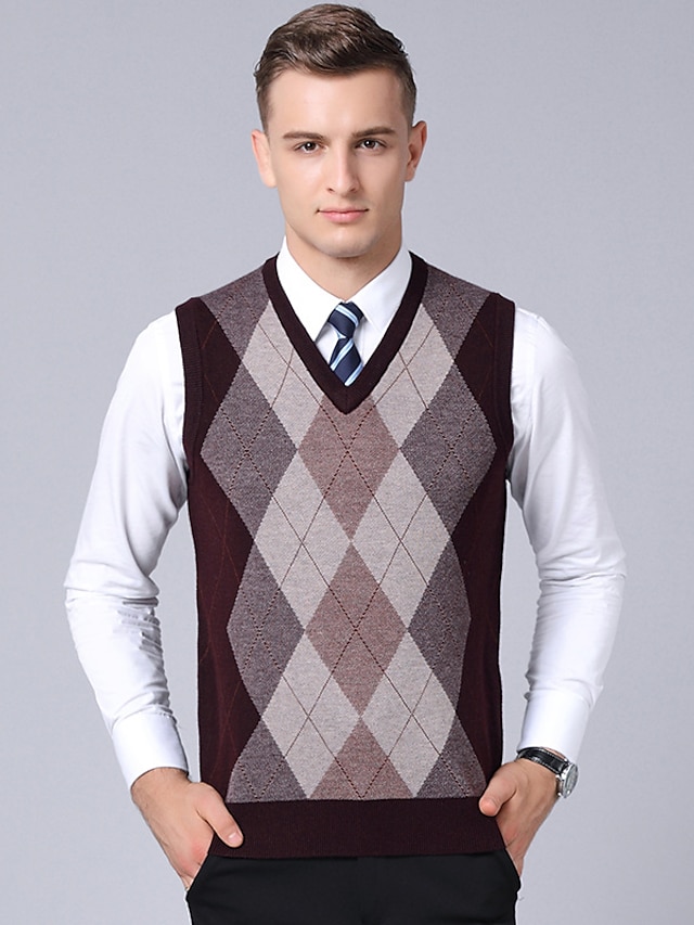 Men's Sweater Vest Jumper Knit Knitted Plaid V Neck Stylish Vintage Style Fall Winter Gray Wine S M L / Sleeveless / Sleeveless