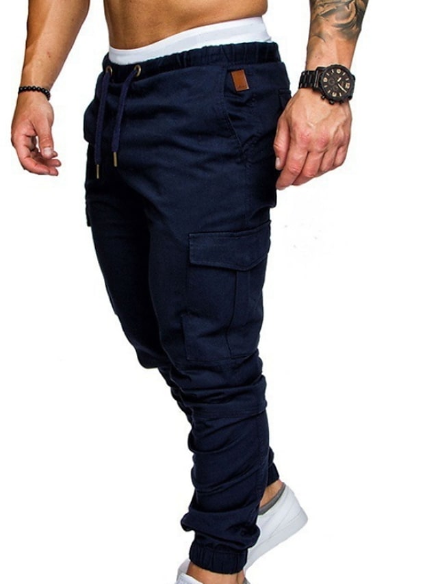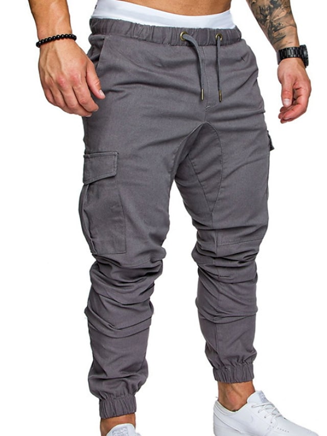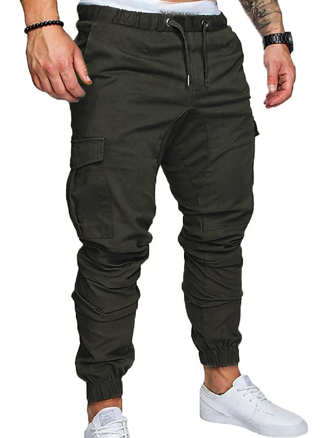 Men's Sweatpants Joggers Cargo Pants Drawstring Elastic Waist Multi Pocket Solid Color Pants Sports Outdoor Daily Wear Cotton Casual White Black