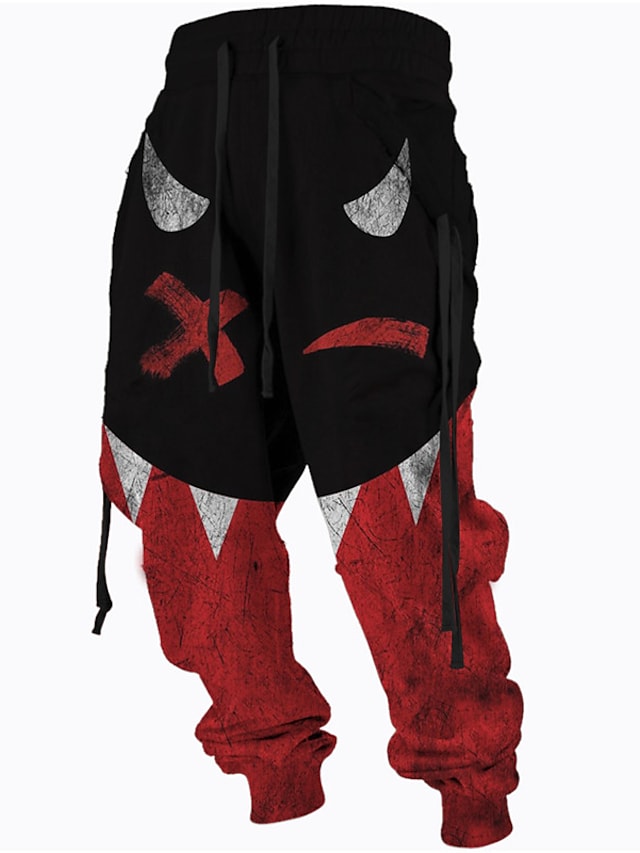 Men's Sweatpants Joggers Trousers Drawstring Elastic Waist 3D Print Graphic Prints Comfort Breathable Pants Sports Outdoor Casual Cotton Blend Streetwear Designer Black-Red Micro-elastic / Elasticity