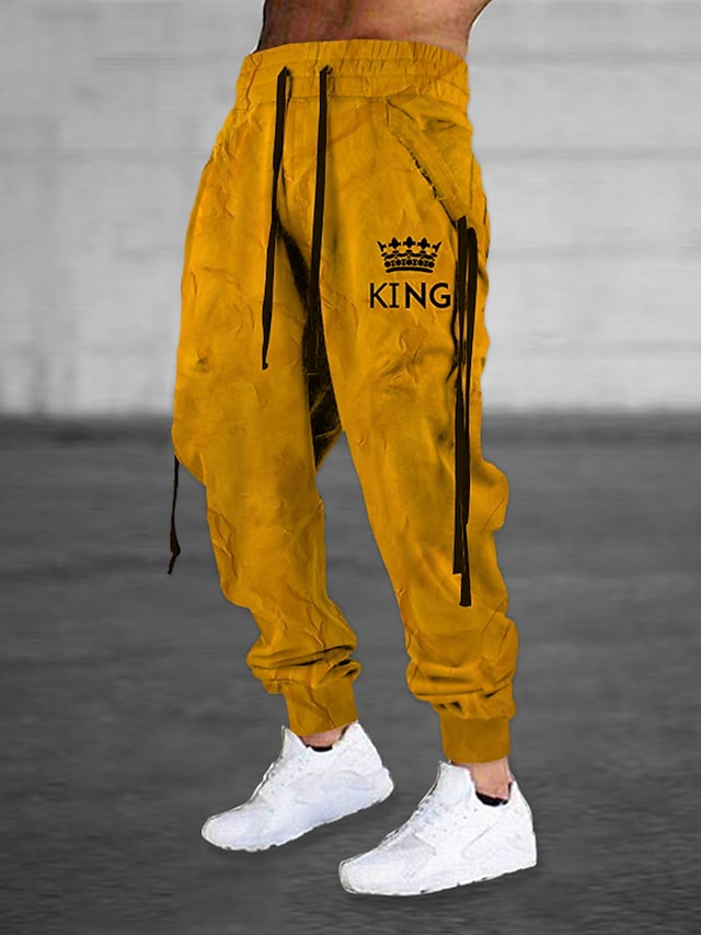 Men's Sweatpants Joggers Trousers Drawstring Elastic Waist Print Letter Graphic Prints Comfort Breathable Pants Sports Outdoor Casual Streetwear Designer Yellow Micro-elastic / Elasticity