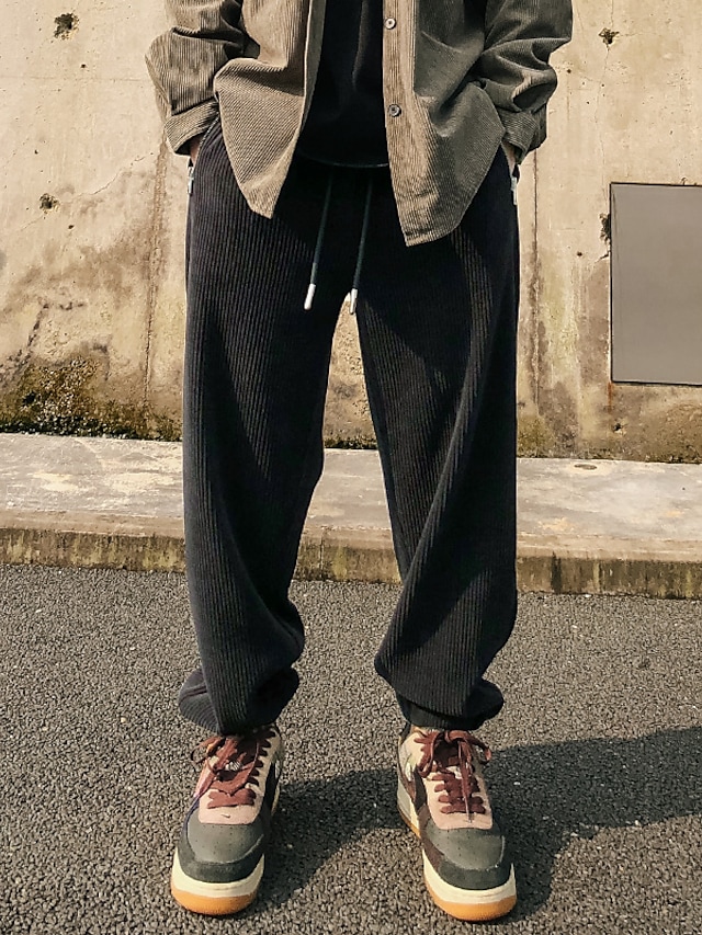 Men's Sweatpants Joggers Trousers Drawstring Elastic Waist Solid Color Comfort Breathable Pants Casual Daily Corduroy Sports Fashion Black Grey Micro-elastic / Elasticity