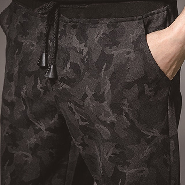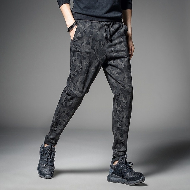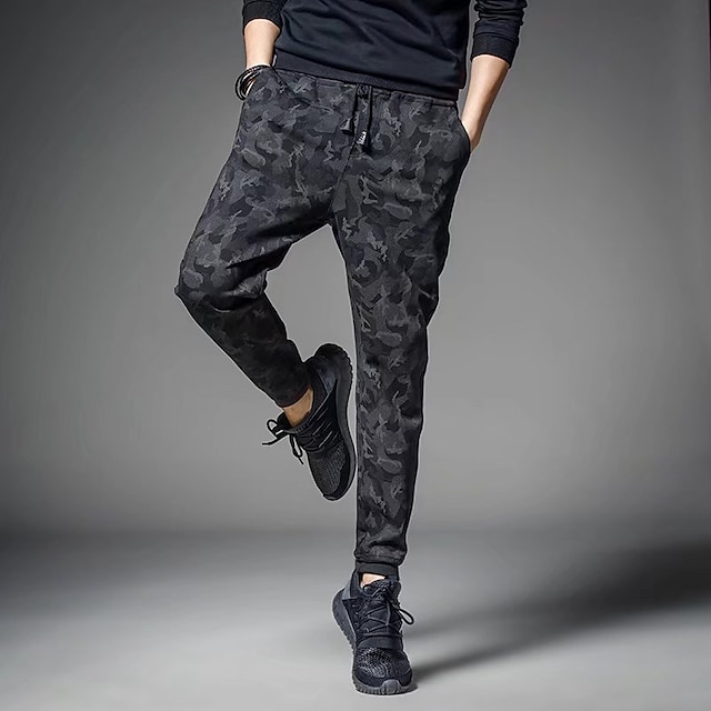 Men's Sweatpants Trousers Tapered pants Drawstring Elastic Waist Solid Color Camouflage Comfort Breathable Pants Casual Daily Cotton Blend Sports Fashion Black Camouflage Micro-elastic / Elasticity