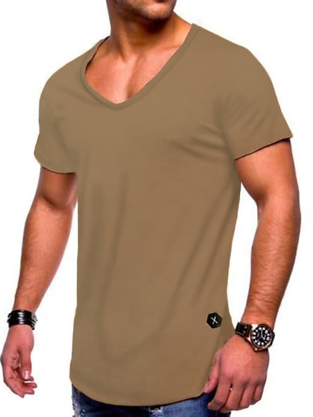 men's tee short sleeved basic t-shirt v-neck neckline gym oversize look casual sportwear solid color slim fit t shirt