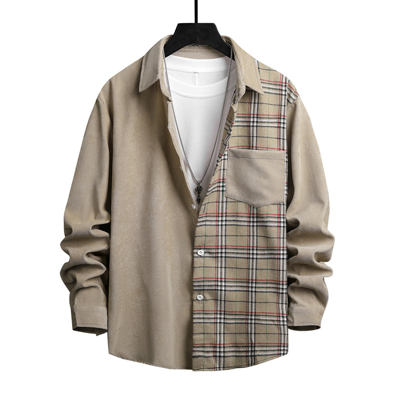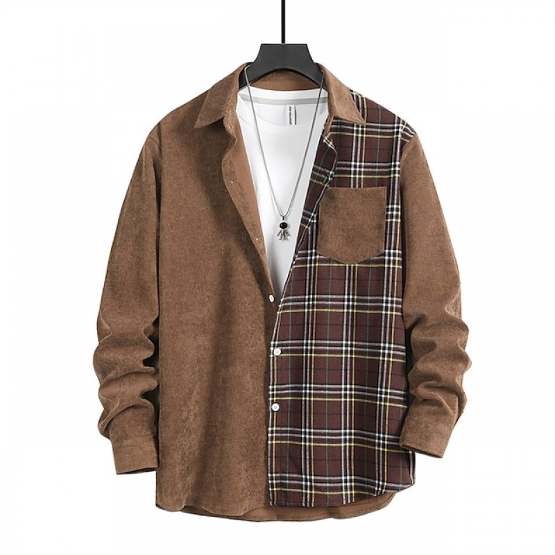 Men's Thick Shirt Shirt Jacket Check Turndown Khaki Brown Long Sleeve Print Daily Vacation Button-Down Tops Fashion Casual Comfortable / Winter / Fall / Winter