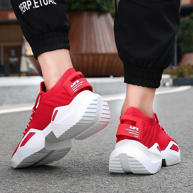 Men's Trainers Athletic Shoes Casual Athletic Walking Shoes Elastic Fabric Breathable Non-slipping Wear Proof Black and White White Red Fall