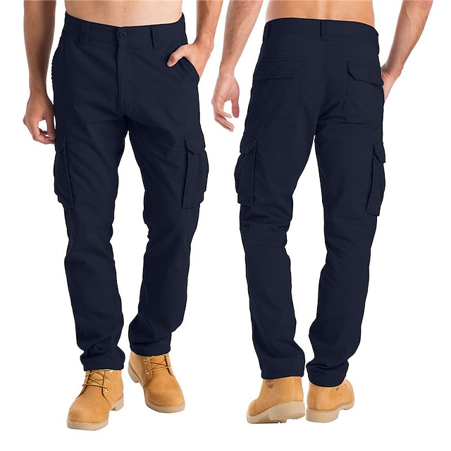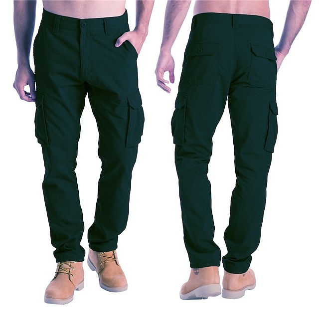 Men's Trousers Cargo Pants Multiple Pockets Solid Color Comfort Breathable Pants Casual Daily Fashion Streetwear Black Gray