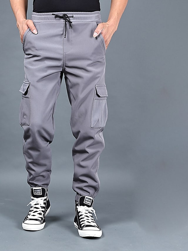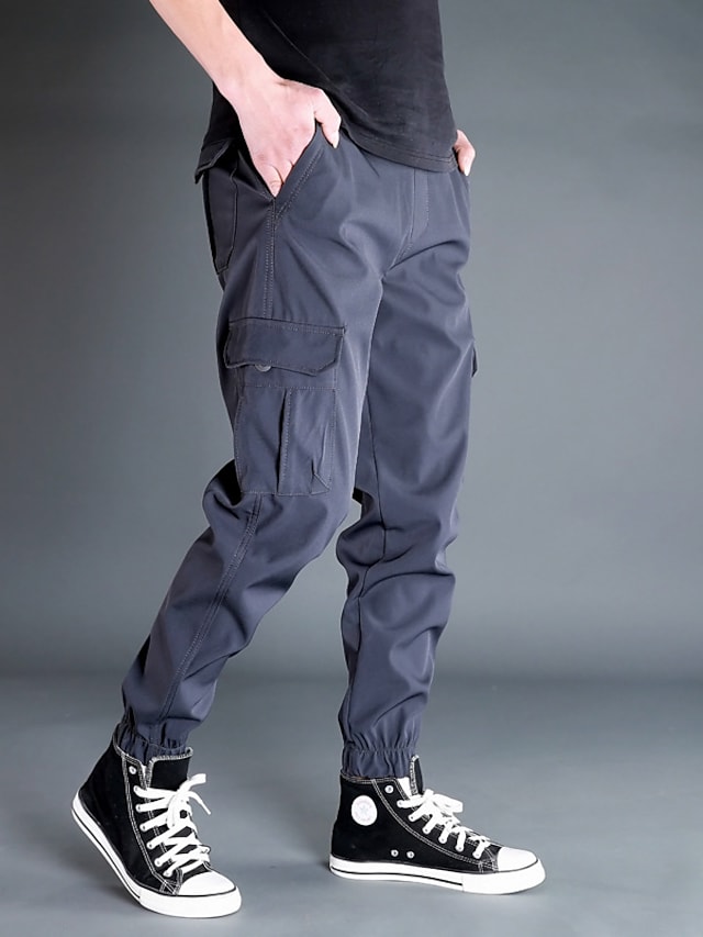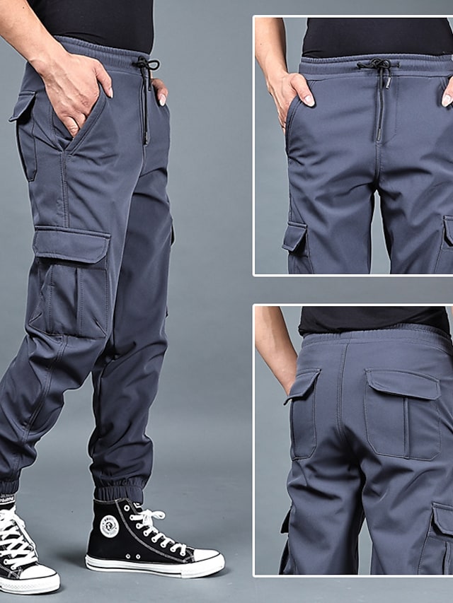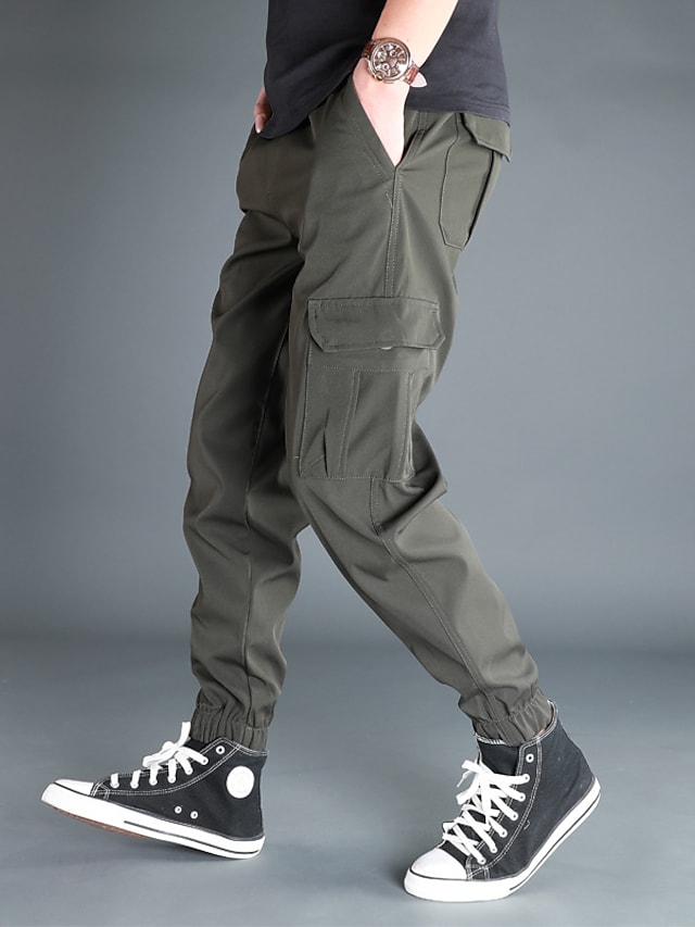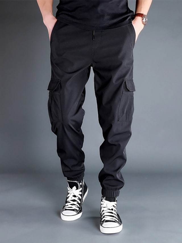 Men's Trousers Cargo Pants Work Pants Drawstring Elastic Waist Multiple Pockets Solid Color Comfort Breathable Pants Casual Daily Sports Fashion ArmyGreen Black Micro-elastic