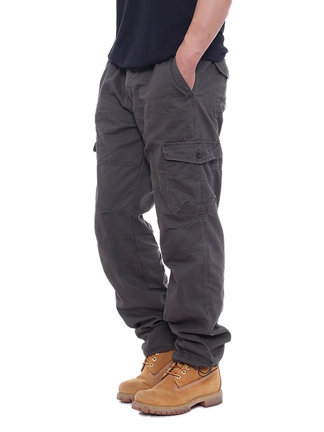 Men's Trousers Work Pants Winter Pants Zipper Multiple Pockets Solid Color Comfort Breathable Pants Casual Daily Fashion Plus velvet ArmyGreen Black Micro-elastic