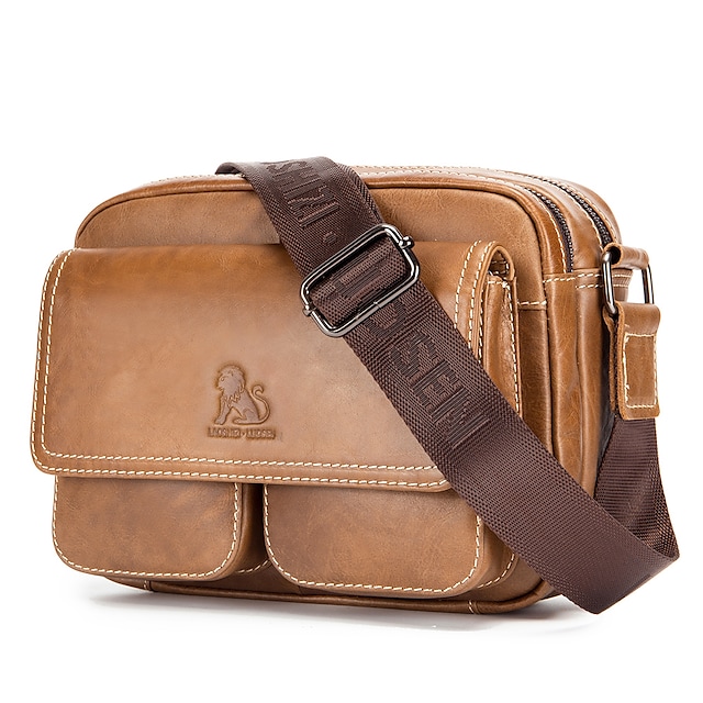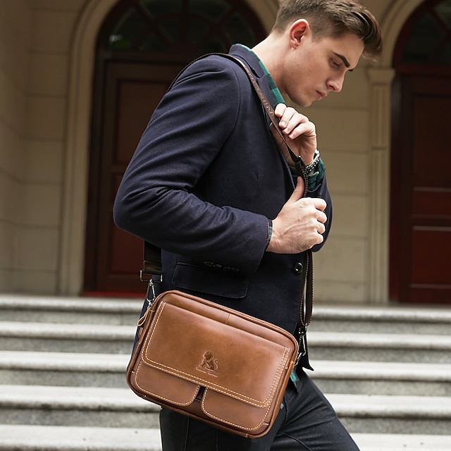 Men's Unisex 2022 Messenger Bag Crossbody Bag Cowhide Zipper Leather Fashion Daily Formal Outdoor Brown