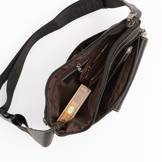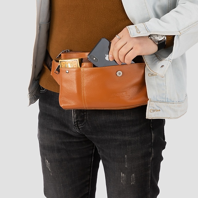 Men's Unisex Bum Bag Messenger Bag Fanny Pack Cowhide Zipper Daily Outdoor Dark Brown Black Yellow