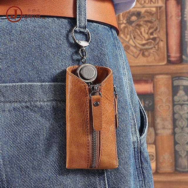 Men's Unisex Fanny Pack Cowhide Zipper Solid Color key storage bag key bag