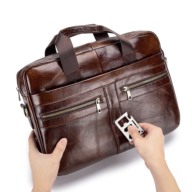 Men's Unisex Sling Bags Briefcase Crossbody Bag Nappa Leather Cowhide Zipper Vintage Daily Office & Career Brown