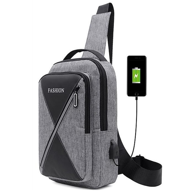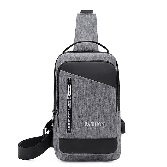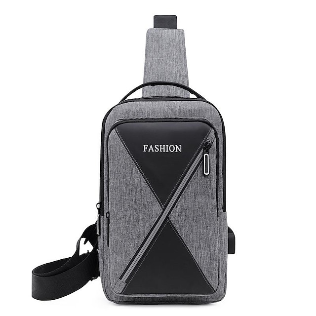 Men's Unisex Sling Shoulder Bag Oxford Cloth Zipper Solid Color Geometric Daily Outdoor Section two solid color gray Section Two Solid Blue One color matching gray One color matching blue