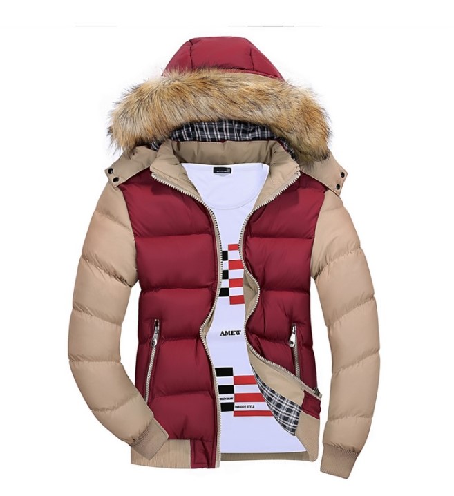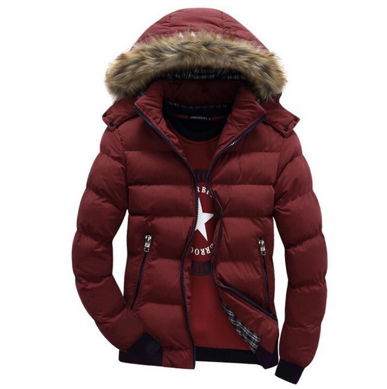 men's winter snow puffer coats fur hooded thick -padded quilted warm down jacket