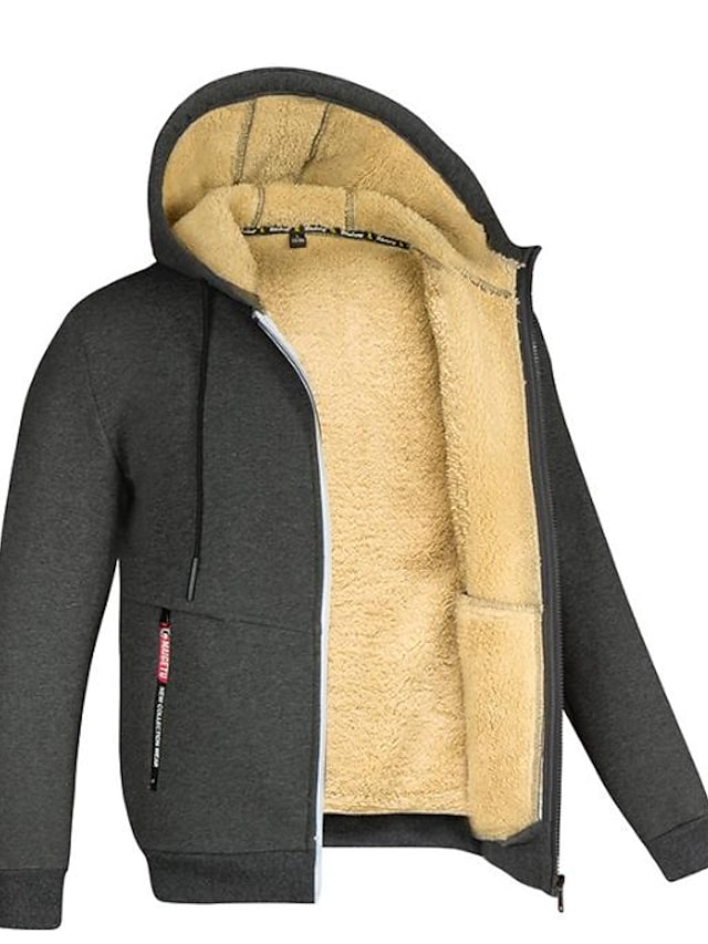 Men's Zip Hoodie Sweatshirt Full Zip Hoodie Solid Color Hooded Daily Going out Casual Hoodies Sweatshirts Long Sleeve Loose Black Gray Fleece