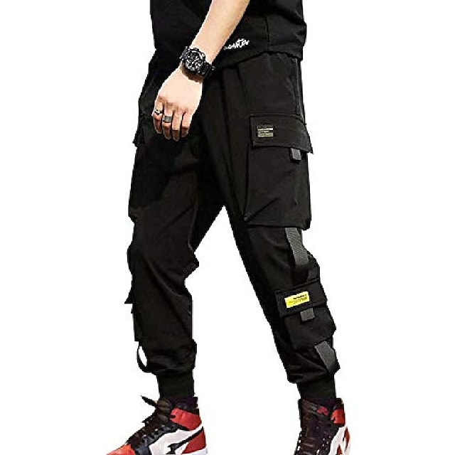 streetwear hip hop pants cargo pants joggers for men unisex sports casual active sweatpants black